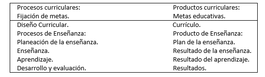Procesos currículares: en el caso de este modelo currícular, toma como base el procesos currícular, sin dejar de lado el producto obtenido, de esta manera determina de manera más clara y definida a dónde se desea llegar y permite una evaluación establecida.